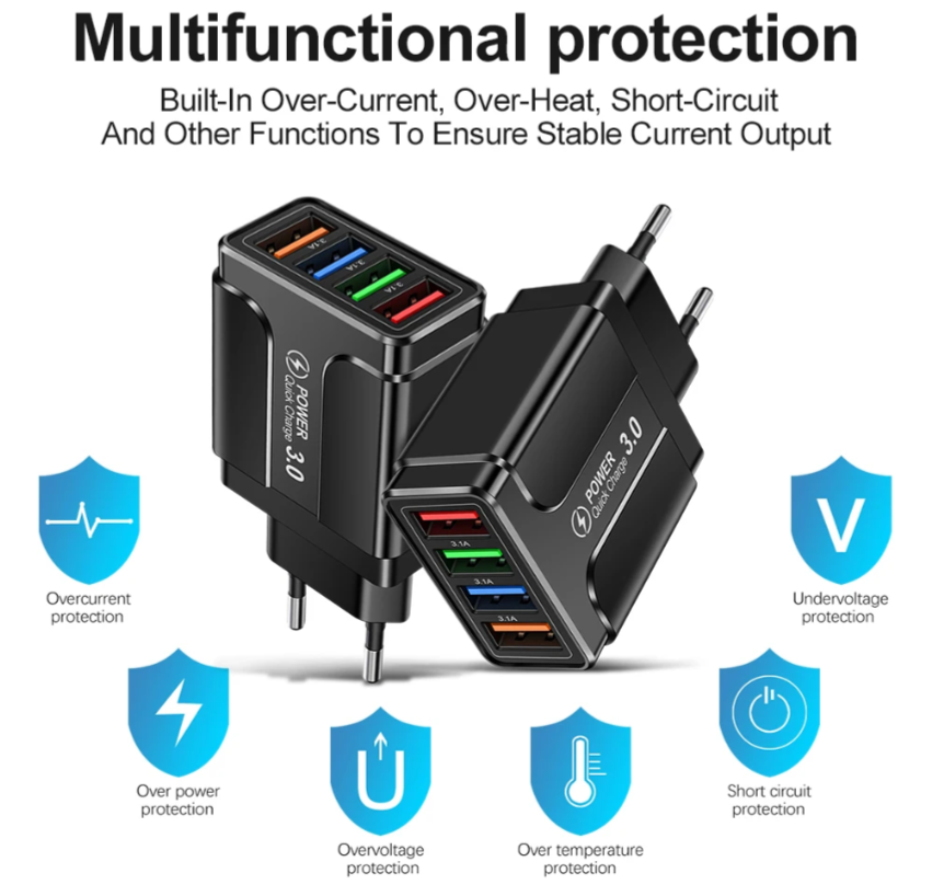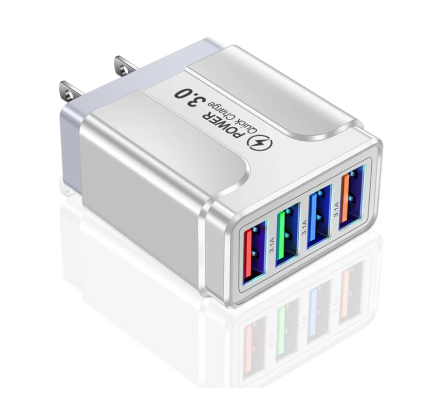 4 Ports Quick Charge 3.0 Wall Fast Charger Adapter Micro USB Fast Data Sync Charger Cable